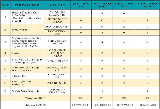 Hexaxim - Vắc xin 6 trong 1 (phòng 6 bệnh: ho gà, bạch hầu, uốn ván, viêm gan B, bại liệt và các bệnh do HIB) Chi tiết...